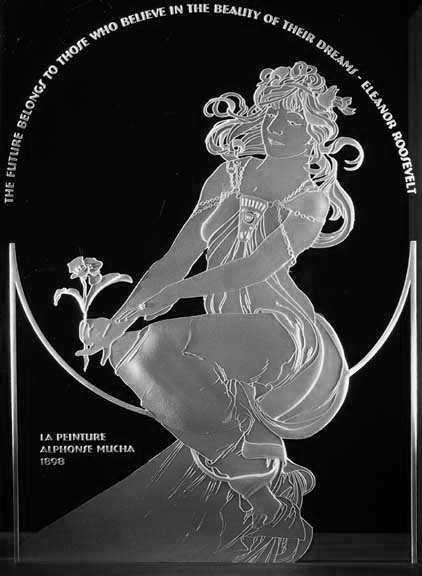 was the first attempt at doing Alphonse Mucha's graphic art piece in glass.