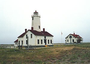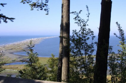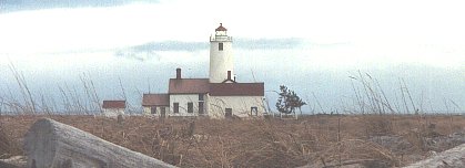 The North Pacific Ocean is known for its violence and towering waves. On the broad Strait of Juan de Fuca the energy barely subsides, especially during frequent windy periods. It is not surprising that captains of vessels battered by the turbulent waters sought refuge behind a long sand spit that curves northeasterly from the mainland at a point where the shore turns southerly. Spanish explorer Manuel Quimper is the first known European to land near the mouth of the Dungeness River. He claimed the land for Spain on July 4,1790, leaving a wooden cross and a cairn of rocks. Captain George Vancouver was next to record a visit, dropping anchor in tranquil, shallow waters in May, 1792. In his log he rhapsodizes that the nearby land presented . . . a landscape almost as enchantingly beautiful as the most elegant finished pleasure-grounds in Europe. . . a beautiful variety of extensive lawn, covered with luxuriant grass and diversified with an abundance of flowers. While we stopped to contemplate these several beauties of nature in a prospect no less pleasing than unexpected, we gathered some gooseberries and roses. . ' He also commented on other wild fruits and shrubs-gooseberries, raspberries, currants, sweetbrier, roses. Vancouver named the location New Dungeness, for it reminded him of an English harbor called Dungeness. A substantial group of Indians, perhaps 1,000 people, lived well in cedar longhouses at Cline's Spit, slightly east of Dungeness Spit, near the site later called New Dungeness, fishing and hunting, fighting and playing as their ancestors did back into the mists of time. Early explorers indicated that their trading friendships were fragile, hostility erupting with little warning. Yet in 1850 a brig captained by Thomas Abernethy stopped to take on provisions and water at New Dungeness. Attracted by the pleasant land, Abernethy returned in spring,
