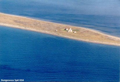 bluffs, Madison at the mouth of the ![]() The Sequim Gazette September 18,1991 Dungeness (England) residents bring gifts to namesake By George McCormick In 1792, Captain George Vancouver landed inside what is now Dungeness Bay, and called it "New Dungeness" because of its resemblance to old Dungeness in England. Old Dungeness is in Kent, and lies about 25 miles southwest of Dover on the southeastern coast of England projecting into the English Channel. It is possibly the best example in the world of a cuspate shingle foreland. The "ness, which means headland, was formed over 3,000 years from flint eroded from the chalk cliffs to the west, it has been rounded by thousands of years of wave action. The pebbles were transported by sea and deposited in a series of great